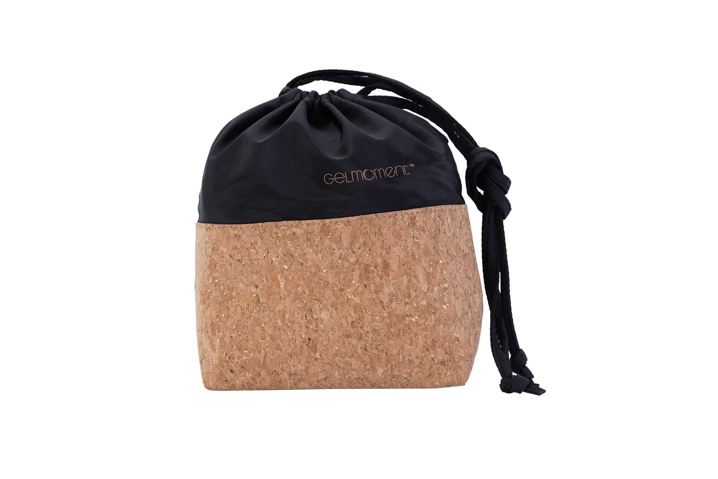 GelMoment’s Cork Drawstring Bag is as sturdy as it is stylish. Tote around your smaller essentials in this perfectly sized and uniquely designed drawstring bag. You have two colour schemes to choose from: cork base with multicolour speckles, pale pink vinyl upper body, and white GelMoment logo; or cork base with gold speckles, black vinyl upper body, and golden GelMoment logo.